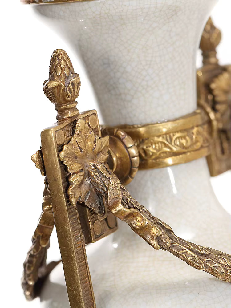 Color & Finish: matte white ceramic body with brushed brass fittings